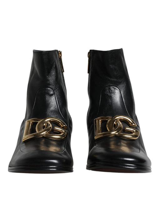 Dolce & Gabbana Black Nappa Leather Logo Ankle Boots Shoes