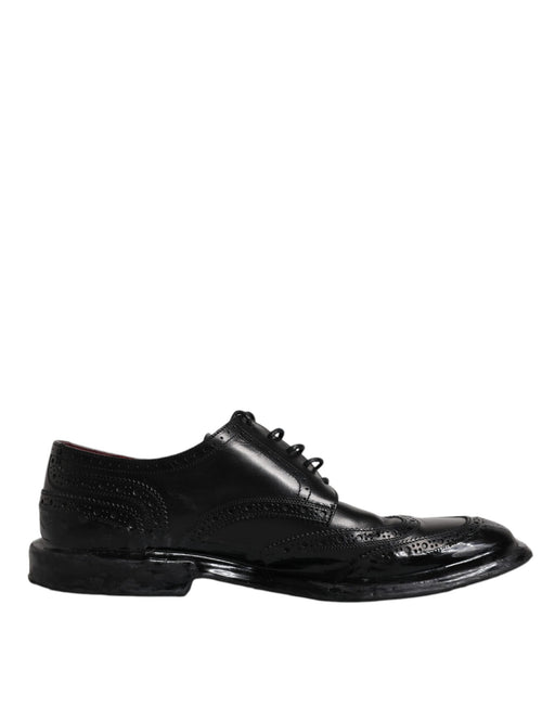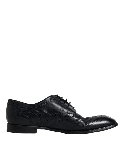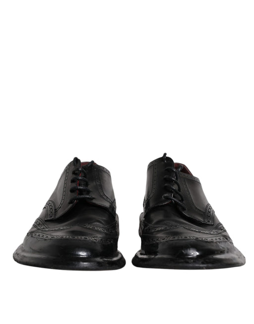 Dolce & Gabbana Black Leather Derby Wingtip Formal Shoes