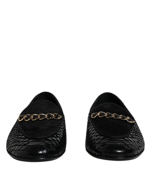 Dolce & Gabbana Black Exotic Leather Loafers Men Dress Shoes