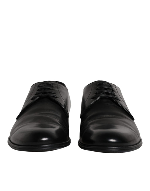 Dolce & Gabbana Black Leather Lace Up Men Derby Formal Shoes