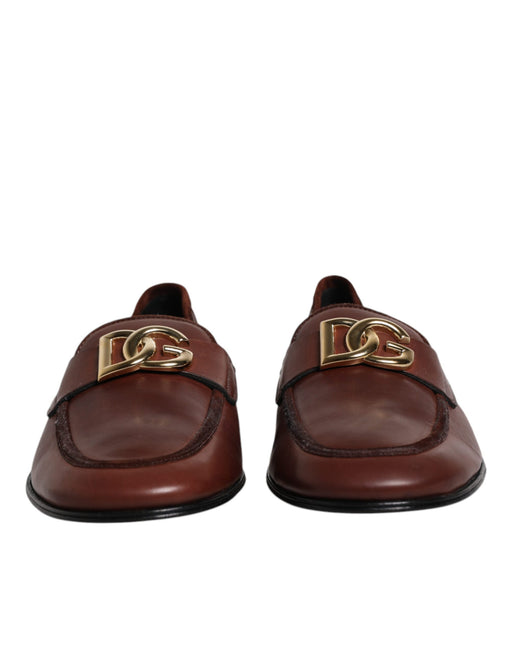 Dolce & Gabbana Brown Leather Logo Slip On Men Loafers Shoes