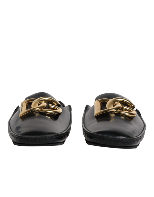 Dolce & Gabbana Black Leather DG Logo Slip On Shoes