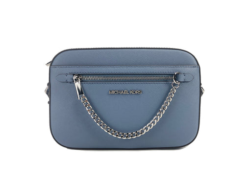 Michael Kors Jet Set East West Large Denim Leather Zip Chain Crossbody Bag