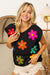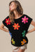 BiBi Flower Round Neck Cap Sleeve Knit Top