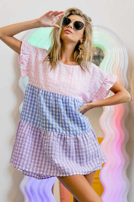 Original price $65.73Current price $36.52| /The Plaid Color Block Tiered Top is a chic and playful addition to your wardrobe. With its combination of plaid and color block patterns, this top ...