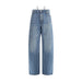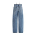 Alexander Wang’s oversized Jeans combine comfort and bold style. The five-pocket style, with a front zipper-and-button closure and belt loops, offers a practical and versatile design. The elasticated waistband, adjustable with a concealed drawstring, ensures a perfect, customizable fit. The brand’s iconic signature contrast stitched on the front adds a distinctive, modern detail. These jeans are ideal for a casual look but with a high-fashion accent, perfect for those seeking an urban, contemporary style.