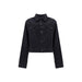 Cotton Denim Jacket by Balenciaga, featuring classic collar, front button closure, two front patch flap pockets, two side welt pockets, contrasting iconic brand monogram at back, monochrome pattern, regular fit.