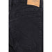 Cotton Denim Pants by Balenciaga, five-pocket straight style, front button closure, front button closure, waistband loops, iconic leather patch with signature brand pressure print applied at back, vintage worn effect design.