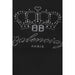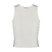 Top by Balenciaga, sleeveless design, neckline on front, iconic brand monogram with contrasting shiny bead detail on front, all-over ribbed design, fitted fit, different colors front and back.