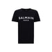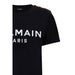 Cotton T-Shirt by Balmain, ribbed crew neck, iconic brand monogram printed in contrast on the front, monochrome pattern, iconic brand embossed buttons applied on the left shoulder, regular fit.