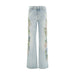 Blumarine’s Embroidered Jeans are an elegant and original piece that combines classic design with sophisticated details. The five-pocket flare style offers an elongated and feminine silhouette, while the front zipper-and-button closure ensures a secure and comfortable fit. Belt loops on the waistband allow you to further customize the fit. The real highlight of these jeans are the beaded embroidered embellishments on both the front and back, adding a touch of luxury and romantic appeal to the look.