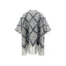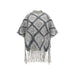 Wool Poncho by Brunello Cucinelli, ribbed high colo, frayed hems, perforated crochet weave embellished with bright sequins, oversize fit.