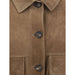 Brunello Cucinelli’s suede Jacket is a refined and versatile piece, perfect for adding a touch of elegance to your wardrobe. The classic collar gives it a timeless look, while the front button closure enhances the simple yet sophisticated design. The two maxi flap pockets on the front offer ample storage, while the two side welt pockets add functionality without compromising on style. The adjustable buttoned cuffs allow for a personalized fit, completing a look that combines practicality and sophistication.