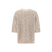 Alpaca Sweater by Brunello Cucinelli, featuring three-quarter sleeve pattern, ribbed crew neck, ribbed hem, perforated crochet weave, monochrome pattern, oversize fit.