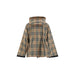 Bacton Windproof Jacket by Burberry, high-necked design, drawstring adjustable hood, logoed cuffs, front zipper closure, logoed side bands, two zippered slit pockets attached to front, drawstring adjustable waist, iconic all-over Archivio Check pattern, regular fit.