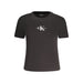 Step into effortless style with this sleek Calvin Klein tee. Crafted from 100% pure cotton for unmatched comfort, it’s the quintessential addition to your daily wardrobe with an edgy touch. Showcasing an iconic crew neck, short sleeves, and adorned with standout embroidery and logo print, this black t-shirt is a testament to timeless fashion. The perfect piece for those who value sophistication and sustainability in their style choices.