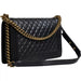 Chanel Black Large Lambskin Double Chain Gold Leather Shoulder Bag