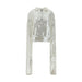 Long Sleeve Top by Coperni, classic collar, V-neck, extra long sleeves, all-over sequin design, patch with iconic brand monogram applied on the front, regular fit.
