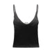 Cotton M-Laila Top by Diesel, cropped sleeveless design, thin shoulder straps, ribbed design, V-neck front, three-dimensional iconic brand logo plaque applique on front, slim fit.