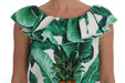 Infuse your wardrobe with a touch of tropical elegance with this sumptuous cap sleeve blouse from Dolce & Gabbana. Part of the enchanting ‘Enchanted Sicily’ collection, this top showcases a playful green banana print adorned by a decadent sequined pineapple motif. The ruffled neckline adds a flirtatious flourish, while the back zipper ensures a seamless fit. Expertly crafted in Italy, this blouse combines 86% cotton and 14% silk for a luxurious feel against your skin.