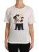 Embrace the luxurious touch of Dolce & Gabbana with this divine white crewneck blouse. Featuring a charming multicolor Figure Family applique, this 100% Authentic t-shirt top is a piece that radiates both comfort and high fashion. Perfect for adding a dash of whimsy to your sophisticated wardrobe, the top is a testament to superb Italian craftsmanship – a blend of fashion-forward design and quality material.