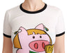 Indulge in the luxury of Dolce & Gabbana with this elegant and timeless white crewneck t-shirt, perfect for adding a touch of high-fashion flair to your casual wear. Crafted from 100% soft cotton for ultimate comfort, this top is adorned with a vibrant, multicolored ‘Year of the Pig 2019’ motive, making it a unique addition to your wardrobe. Proudly made in Italy, it features subtle logo details that showcase the brand’s renowned attention to detail.