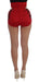 Elevate your wardrobe with the luxurious touch of Dolce & Gabbana. These high-waisted mini shorts, adorned with vibrant red silk and intricate roses embroidery, are a statement piece that exude Italian sophistication. The shorts are meticulously embellished with glistening crystals, adding a hint of glamour to your ensemble. Perfect for a daring fashion statement, they reflect the craftsmanship and allure of Dolce & Gabbana’s MainLine Collection. Experience the blend of comfort and impeccable style with these dazzling shorts, made in Italy.