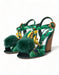 Dolce & Gabbana Green Crystal Mink Fur T-Strap Sandals