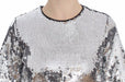 Step into a world of glamour with this enticing Dolce & Gabbana top. Crafted for the woman who adores luxury and isn’t afraid to shimmer, this black blouse boasts a dazzling array of silver sequins, perfect for your next enchanting outing. Straight from Italy, known for its high-quality craftsmanship, this top will not only captivate the crowd but also nestle against your skin with its delicate silk lining.