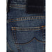 Cotton Jeans by Jacob Cohen, five-pocket straight style, front button and zipper closure, waistband loops, iconic branded signature leather pressure-printed patch applied at back.
