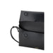 Leather Shoulder Bag by Jil Sander, an adjustable flat shoulder strap, front closure by magnetic flap, iconic brand monogram press-stamped on front, single interior compartment, monochrome pattern.