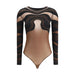 The Venus Body by Wolford is a sophisticated piece that plays with transparency in an elegant way. The long-sleeved model with a classic crew neck offers a comfortable and versatile fit. The graphic lines in the design, combined with the transparent-opaque knit, create an interesting and modern visual effect. The classic snap button closure adds practicality, while the mix of transparency and opacity gives the body a unique character, perfect for pairing with casual or more formal looks.