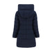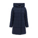 Prescott Down Jacket by Woolrich, concealed asymmetrical zipper closure, hooded design, two side slit pockets, quilted and padded design, oversize fit.