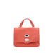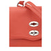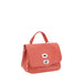 Calfskin Postina Daily Shoulder Bag by Zanellato, front hook-and-eye closure, short leather handle, removable and adjustable shoulder strap, grained leather design, contrasting metallic studded trim, single interior compartment, interior flat pocket with zipper.