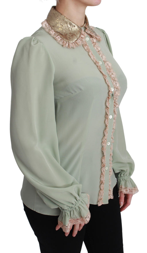 Dolce & Gabbana Elegant Mint Green Silk Blend Sequin Collar Top