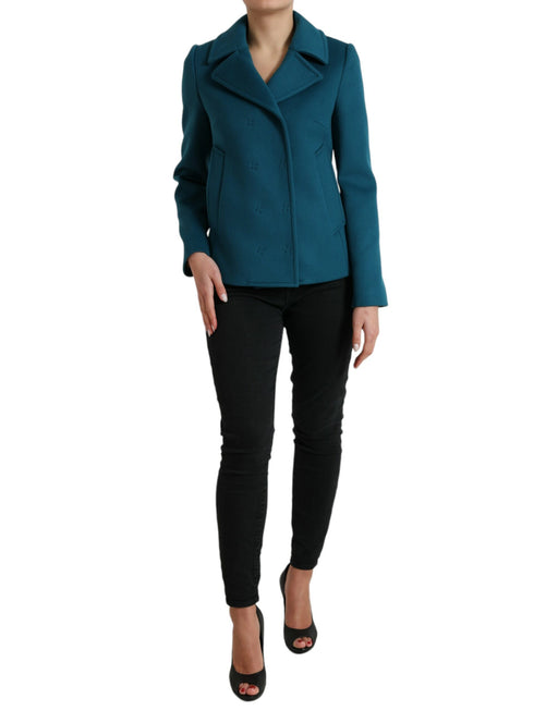 Dolce & Gabbana Blue Trench Wool Cashmere Short Coat Jacket