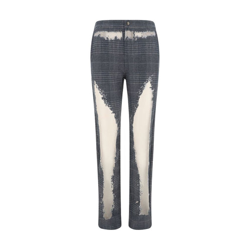 Original price $584.28Current price $483.65| /Cotton Pants by Diesel, flare style, front zipper and button closure, two side slash pockets, all-over check pattern, tear detail with semi-transpa...