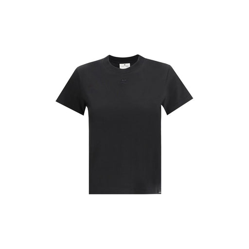 Original price $335.42Current price $296.47| /Cotton T-Shirt from Courrèges, ribbed crew neck, iconic brand logo embroidered on front, monochrome pattern, regular fit.