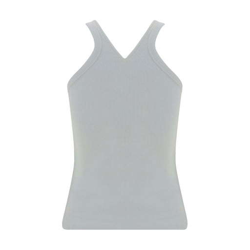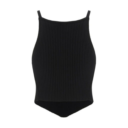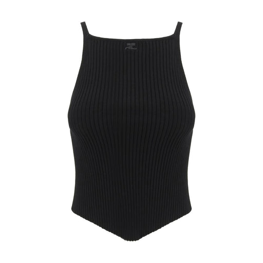 Original price $389.52Current price $340.83| /Top by Courrèges, thin straps, square neckline on front and back, iconic embroidered logo on front panel, ribbed design, asymmetrical hemline on fr...