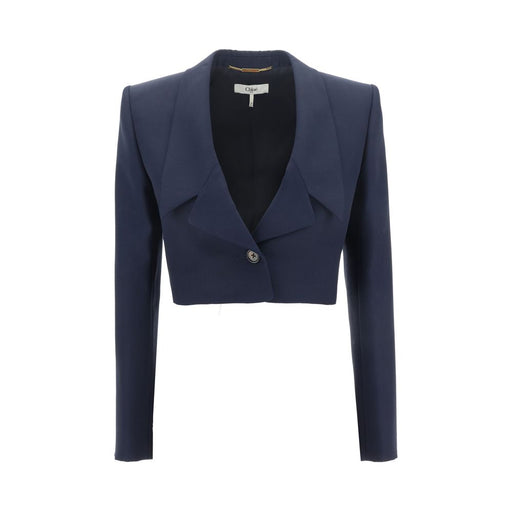 Original price $2,780.74Current price $1,455.29| /Virgin Wool Blazer Jacket by Chloé, featuring cropped design, classic lapels, front button fastening, monochrome pattern, regular fit.