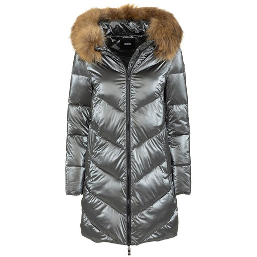 Imperfect Elegant Long Down Jacket with Eco-Fur Hood