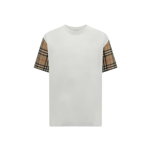 Original price $584.28Current price $516.11| /Cotton T-Shirt by Burberry, ribbed crew neck, contrast sleeves with iconic Check Archive pattern, regular fit.
