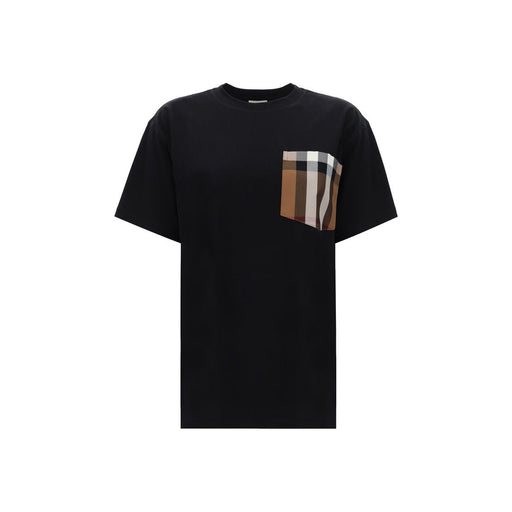 Original price $594.64Current price $566.51| /Cotton T-Shirt by Burberry, ribbed crew neck, welt patch pocket on front with brand’s iconic Archive Check pattern detail, monochrome pattern, regu...