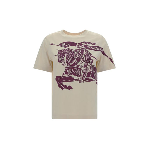 Original price $627.10Current price $551.36| /Cotton T-Shirt by burberry, ribbed crew neck, contrasting brand’s iconic The Equestrian Knight logo on front, monochrome pattern, regular fit.