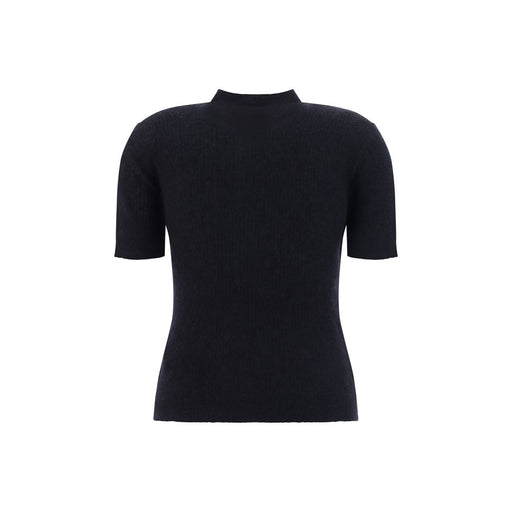 Original price $1,546.80Current price $1,070.72| /Mohair Wool Top by Balmain, short-sleeved design, asymmetrical neckline on front, ribbed hem, applique jewel button detail on front, monochrome pat...