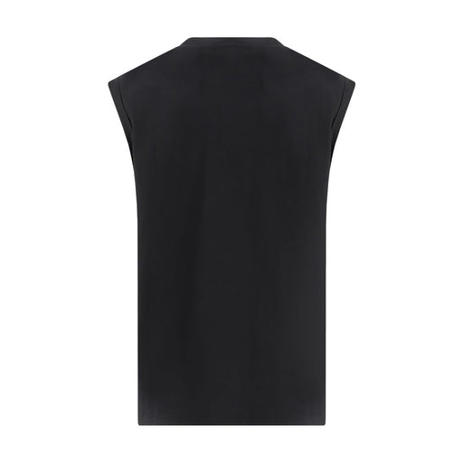 Original price $519.36Current price $444.70| /Cotton Top by Balmain, sleeveless design, ribbed crew neck, contrasting iconic brand monogram on front, embossed button detail applied on left shou...