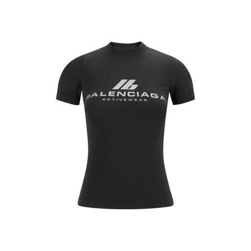 Original price $724.48Current price $681.20| /Cotton T-Shirt by Balenciaga, ribbed crew neck, contrasting iconic brand monogram on front, monochrome pattern, slim fit.
