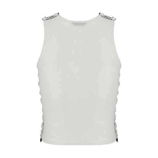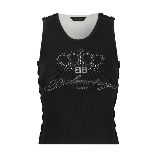 Original price $1,806.94Current price $1,026.82| /Top by Balenciaga, sleeveless design, neckline on front, iconic brand monogram with contrasting shiny bead detail on front, all-over ribbed design,...