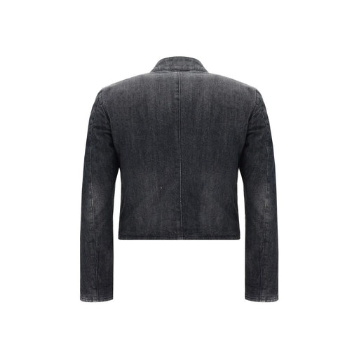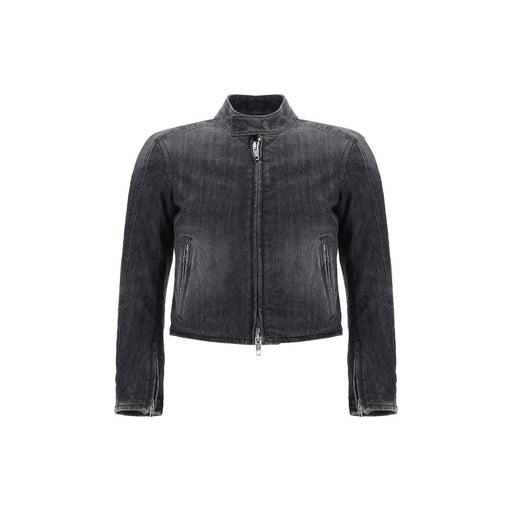 Original price $2,510.24Current price $1,313.55| /Cotton Shrunk Racer Jacket by Balenciaga, cropped style, quilted denim design, high collar with snap buttons, two-slider front zipper closure, two ...