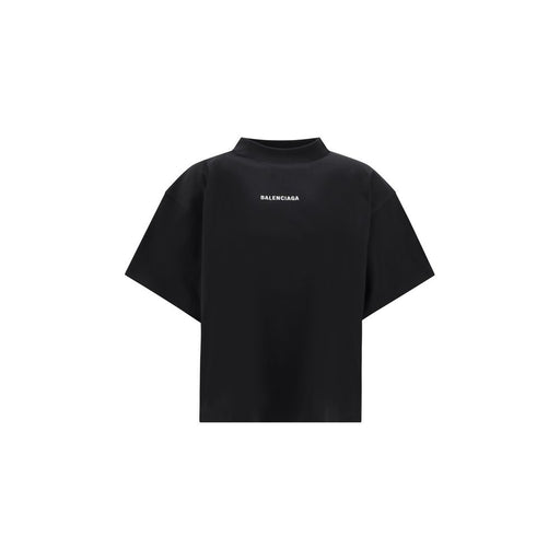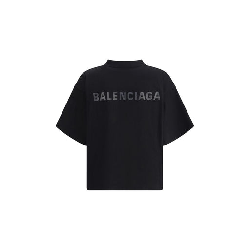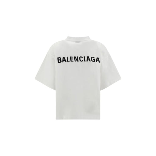 Original price $714.12Current price $584.28| /Cotton T-Shirt by Balenciaga, ribbed crew neck, contrasting iconic brand monogram on front, monochrome pattern, oversize fit.